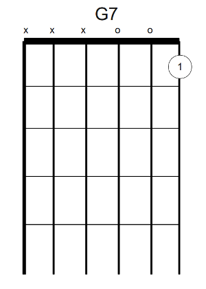 Les accords simplissimes de DO et SOL7 peuvent être, comme on l'a vu à la leçon introduction au SOL, réalisés en brossant les 3 cordes les plus aigües comme les diagrammes ci-dessous